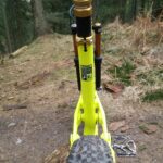 Bagdæmperen kommer i et meget normalt mål for 155 mm vandring. Jeg har tidligere brugt en Rock Shox Monarch RT3 på en anden ramme med målet 200×57. Grundet at den både var kort samt kørt med højt tryk, så kom der højere friktion og varme, som til sidst sled bagdæmperen mere end anbefalet.